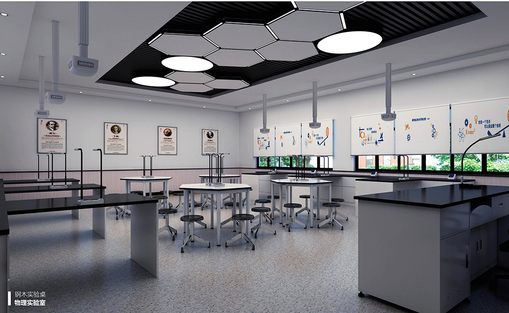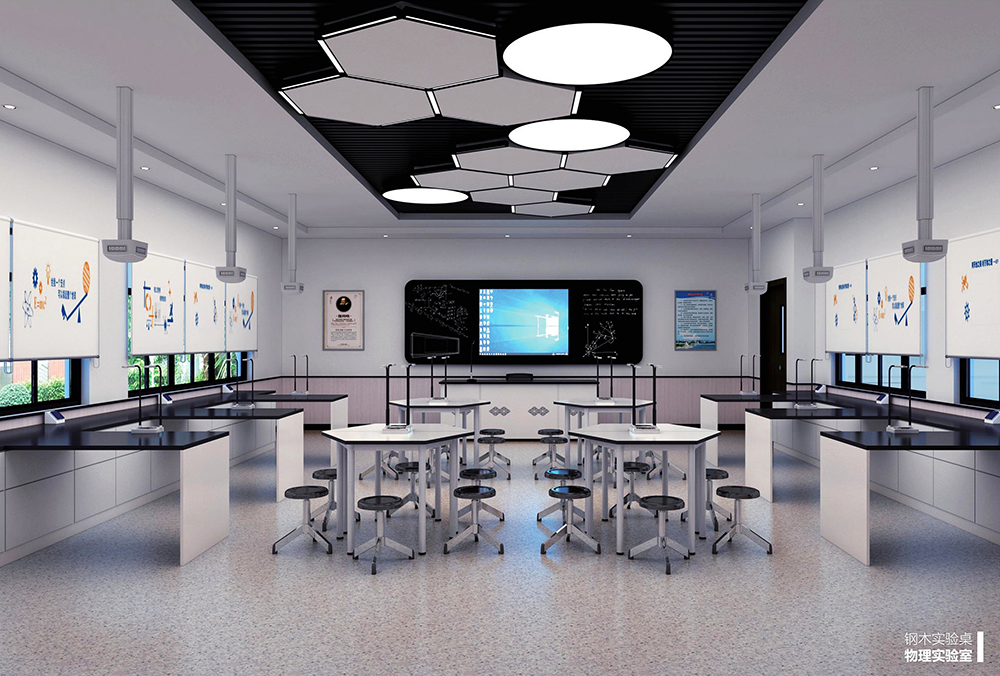 研究院不仅考虑了安全与环保,更考虑到教学空间的互动性。物理实验室在满足师生物理实验需求的情况下,结合互动单元实现了多种教学优势。