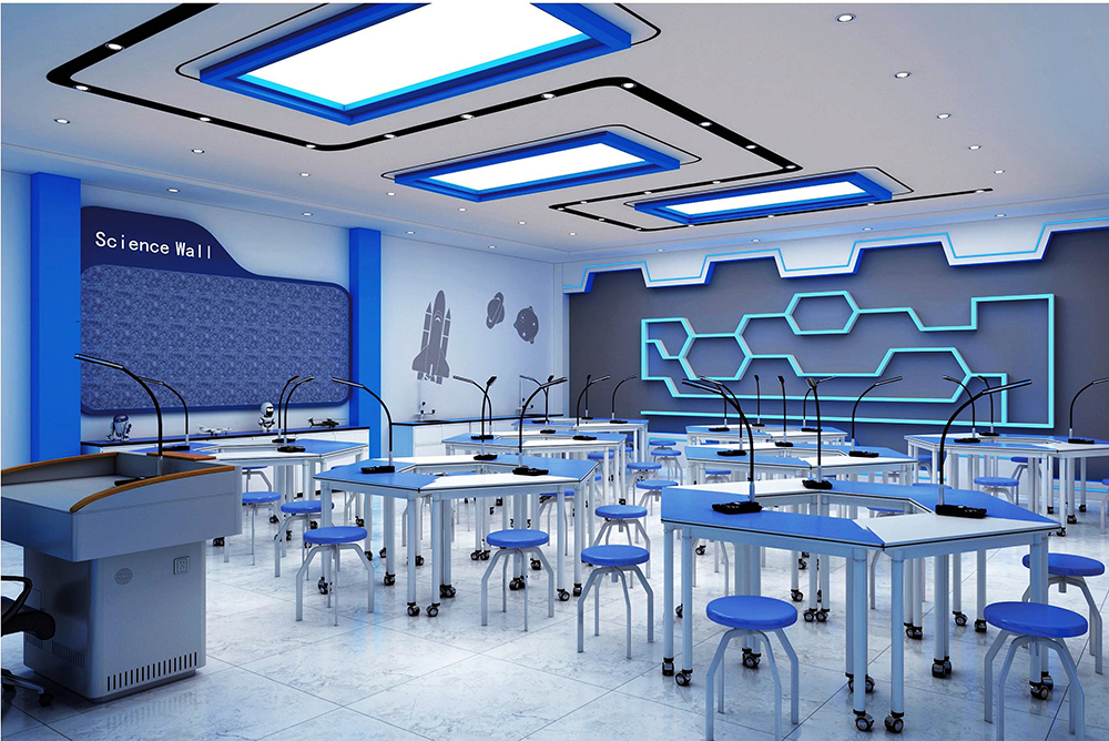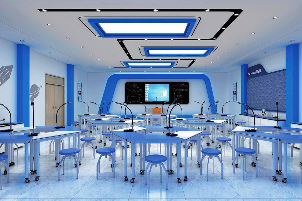 与实验室相比,科学教室更为注重培养的是学生合作解决问题的能力和自我表达的能力。因此,研究院在科学教室的设计上偏重更好实现小组学习。采取自由组合度高的教室布置,方便学生进行小组合作学习。另外,结合了强交互智慧课堂,让学生能够将思考过程进行可视化的分享,提高课程质量。