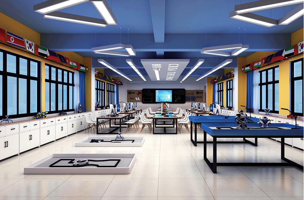 研究院根据不同的需求定制创客课室,在课室布置中加入强交互智慧课堂系统,通过视频互动,教师可以清晰展示创客教学的过程,学生也可以同步展示自己创造的成果及制作思路,实现师生互动和生生互动。以信息化手段实现课堂高效学习,让教师轻松实现创客教学活动的开展。